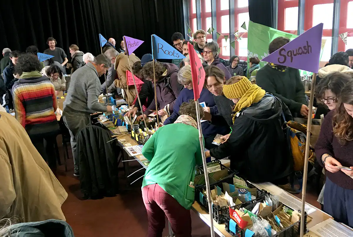 Donate your surplus stash to a seed swap. Community groups, allotment associations, gardening clubs, and the WI periodically hold free events around the country where you can swap your seeds. Bristol holds a large annual event which also includes speakers and stalls. These social events celebrate the joy of growing and sharing.